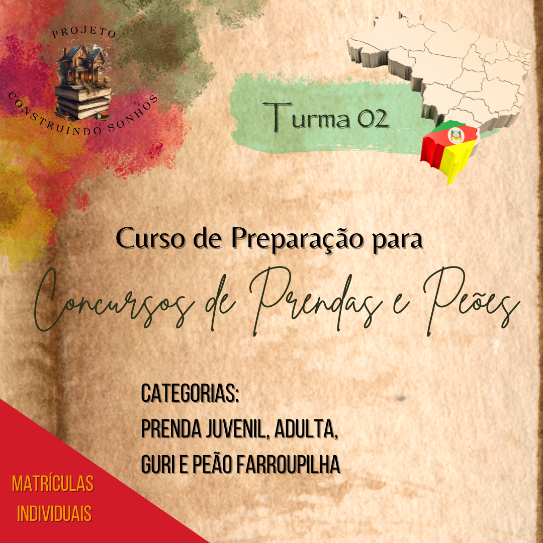 Com um time de 12 Professores, especializados em Arte e Cultura Gaúcha, dominamos as artes da Declamação, Escrita Poética e preparamos vencedores de Concursos de Prendas e Peões em todo o Brasil.